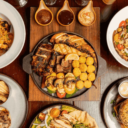 یک سیخ جوجه زعفرانی+دو سیخ کوبیده مخصوص+یک سیخ چنجه+یک سیخ جوجه ی ویژه کنار+چهار پرس برنج ایرانی+زیتون پرورده+ماست چکیده+دورچین
